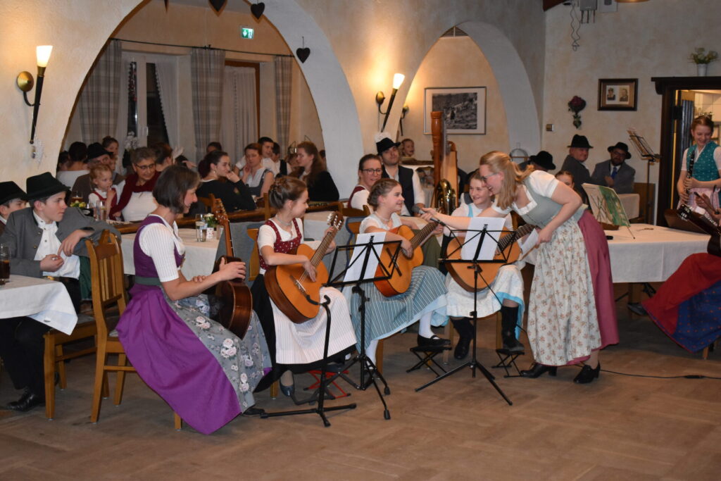 Auch das „Gitarrentrio zu viert“ aus Litzldorf und Derndorf sowie die gemischte Geigenmusi aus Au und Bad Feilnbach sorgten für weitere abwechslungsreiche Beiträge und rundeten den Abend musikalisch ab.